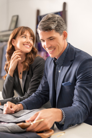 Fit and style are sometimes two different things, someone's perfect fit might be too loose or too tight for the next person. This is why it is so important to meet with our fit and fashion experts your first time through the process. Our job which we take very seriously, is to take these beautiful fabrics and make people's bodies look their best!