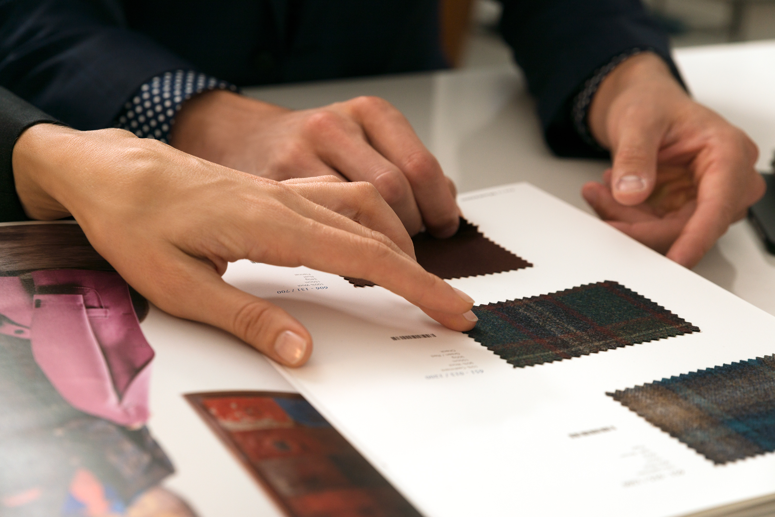 Fit and style are sometimes two different things, someone's perfect fit might be too loose or too tight for the next person. This is why it is so important to meet with our fit and fashion experts your first time through the process. Our job which we take very seriously, is to take these beautiful fabrics and make people's bodies look their best!